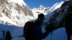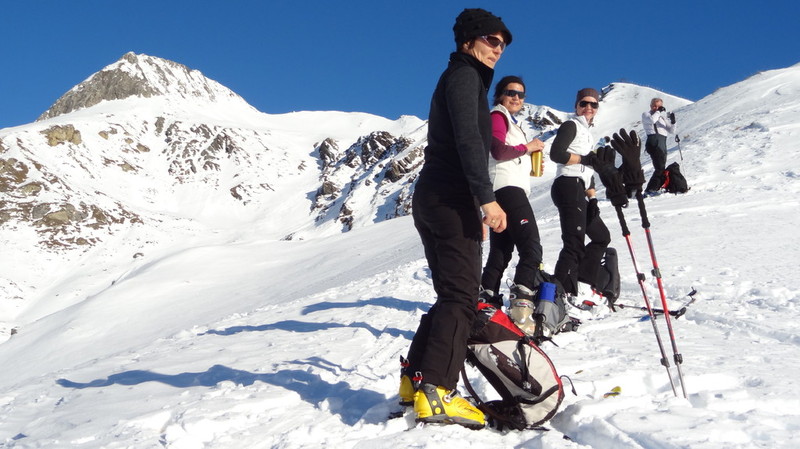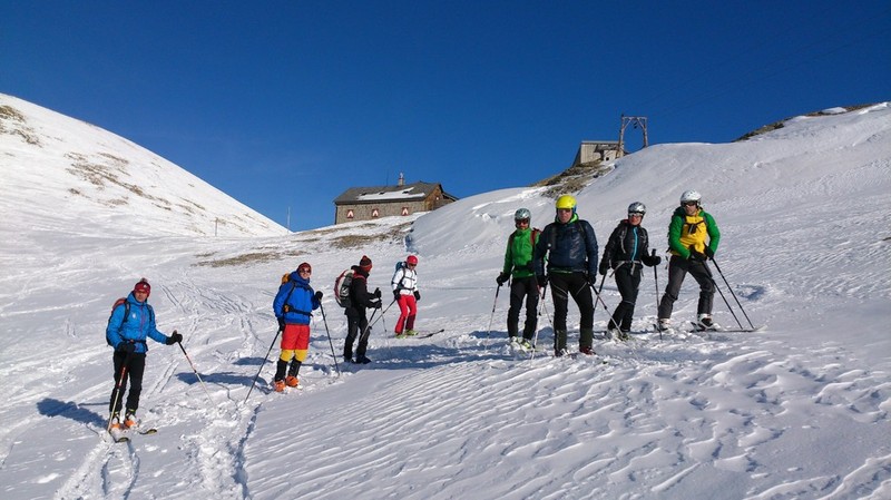 Nord-Ost Abfahrt Richtung Leitertal und stieg noch einmal ca. 50 HM zur Glorerhütte ( 2651m ) auf. Alle genossen nun die schönen Hänge mit Pulverschnee und erreichten mühelos den