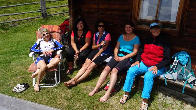 Drei Damen hatten mit der E-Bike - Auffahrt noch nicht genug und gingen noch aufs böse Weibele .